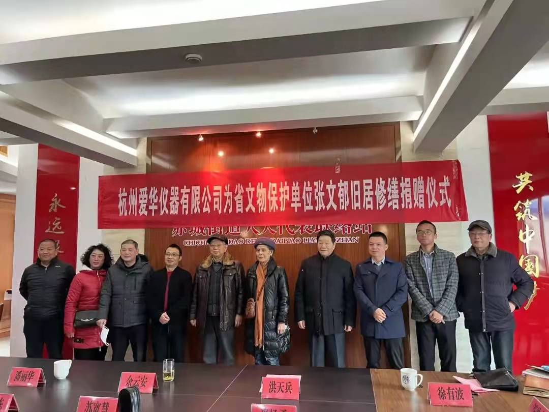 儀式上,杭州zoty中歐體育官方網站儀器有限公司法人代表,天臺鄉賢張紹棟先生向我縣赤城街道張文郁故居(三逸閣)修繕工程捐贈100萬元人民幣,用于我縣的文物保護工作,為我縣的文物保護工作創新保護思路,拓展社會資金。