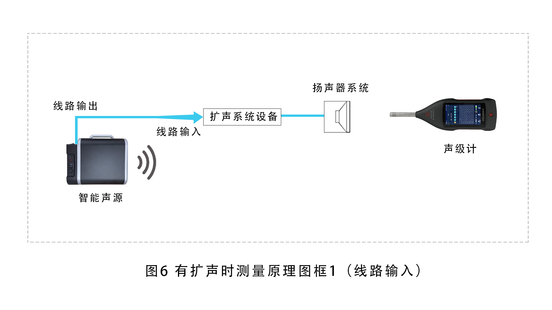 如果被測場所內擴聲系統不含系統傳聲器而是直接通過播放器播放音頻,則將智能音箱中線路輸出的電信號輸入至擴聲系統的線路輸入。測試信號通過擴聲調音臺線路輸入擴聲系統,經擴聲系統使揚聲器系統發聲,由聲級計按相關標準要求測量擴聲系統和聲學場所的各項指標。